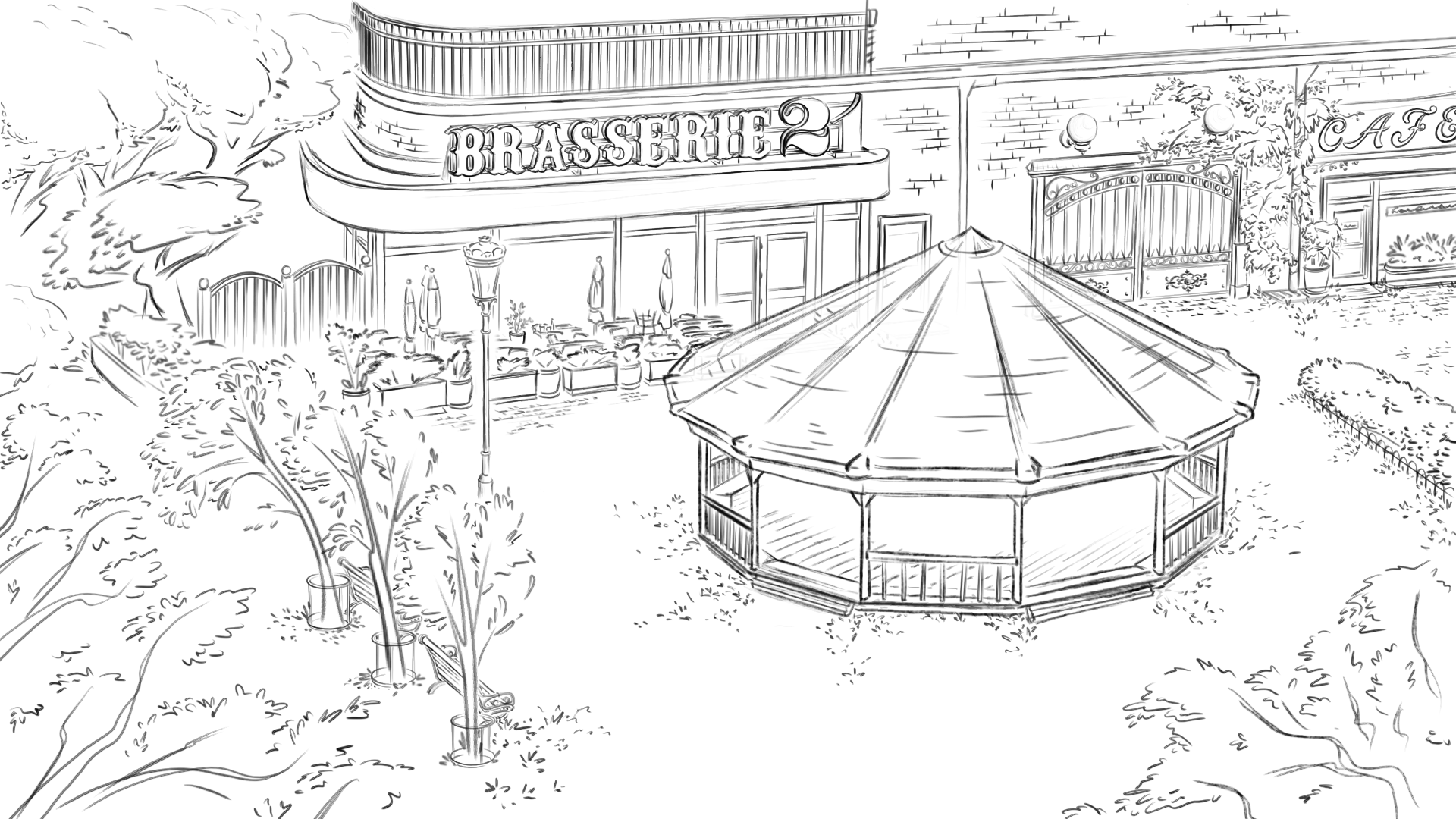Som sagt så ville jag att min film skulla ta plats i min hemstad Uppsala. Så jag började med att ta hundratals bilder av alla miljöer jag ville ha med. Många av scenerna var planerade att ske kring danspaviljongen i stadsparken, och många fler vid Fågelhuset vid Svandammen. Väl redo, så började jag ivrigt teckna fram scenerna jag hade tänkt mig, med bilderna som referens.