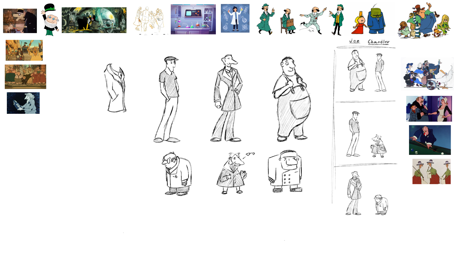 Dessa är designerna jag gjorde för mobbarna i min film. Jag ville ha dem i stil med 40:talets maffia-gangsters och tog även inspiration från gamarna i DIsneys 'Jungelboken'