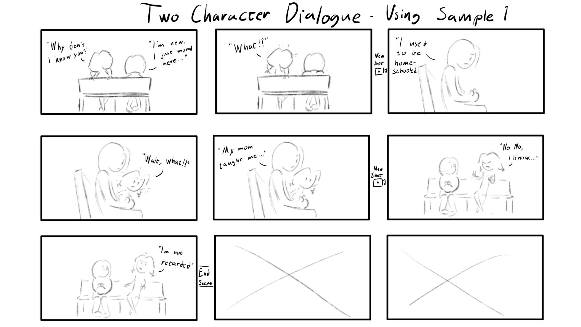 Bildmanuset ovan är från första gången jag arbetade med en scen med två karaktärer. Manuset är från ett avsnitt av tv-showen 'Friends'. Jag föreställde mig en scen med en nervös liten forskare som mobbas av sin sluga välgörare.